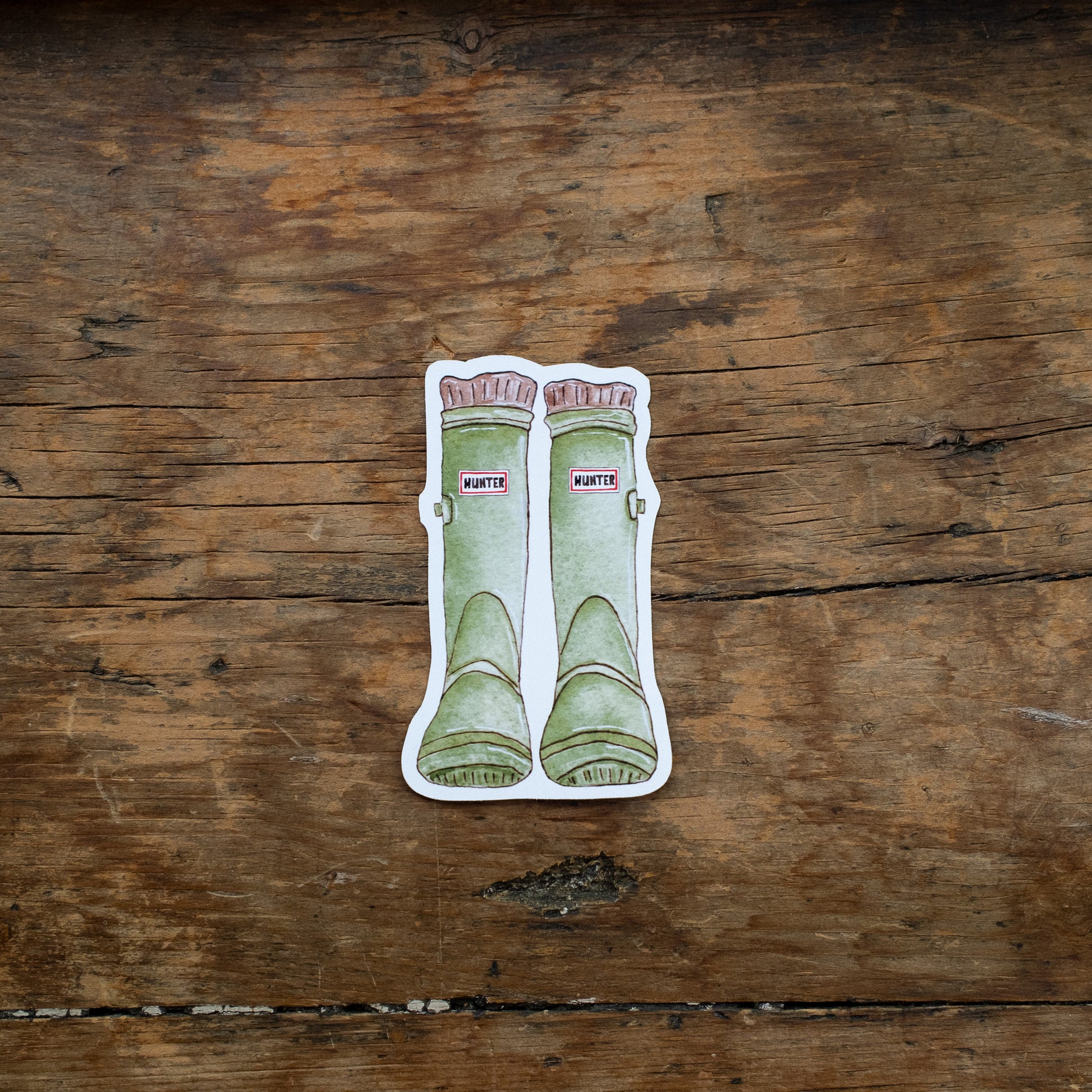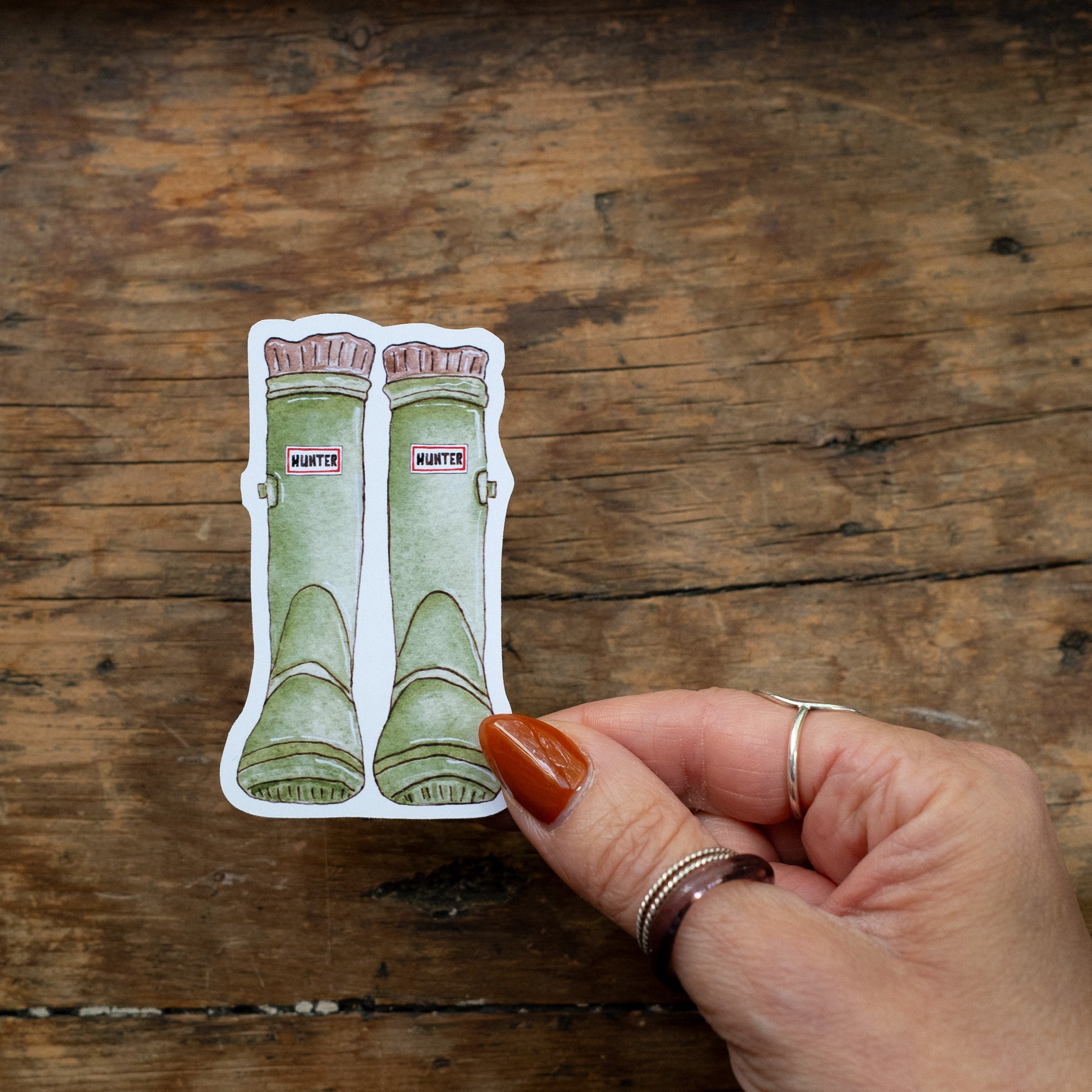 Autocollant de mes bottes d'eau à l'aquarelle, imprimé sur un papier autocollant vinyle mat.