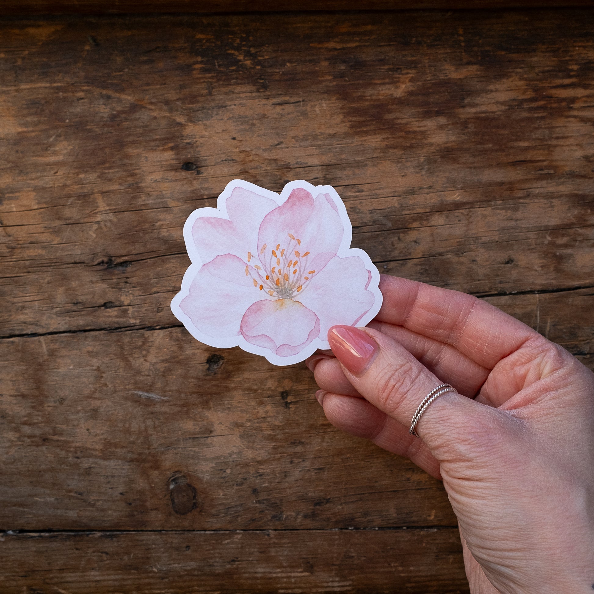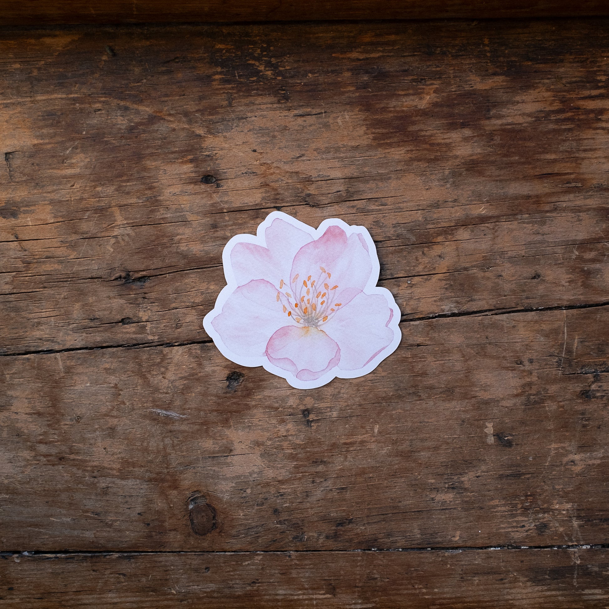 Autocollant de ma fleur de cerisier illustrée à l'aquarelle, imprimé sur un papier autocollant vinyle mat.