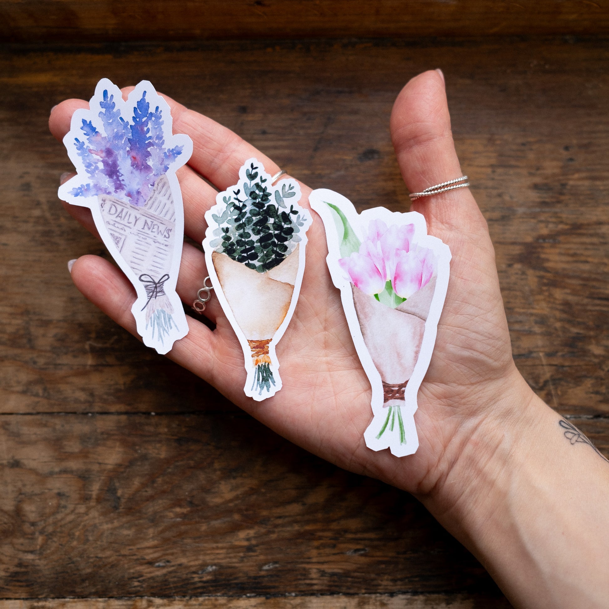 Trio d'autocollants vinyle mat, de mes bouquets peints à l'aquarelle.