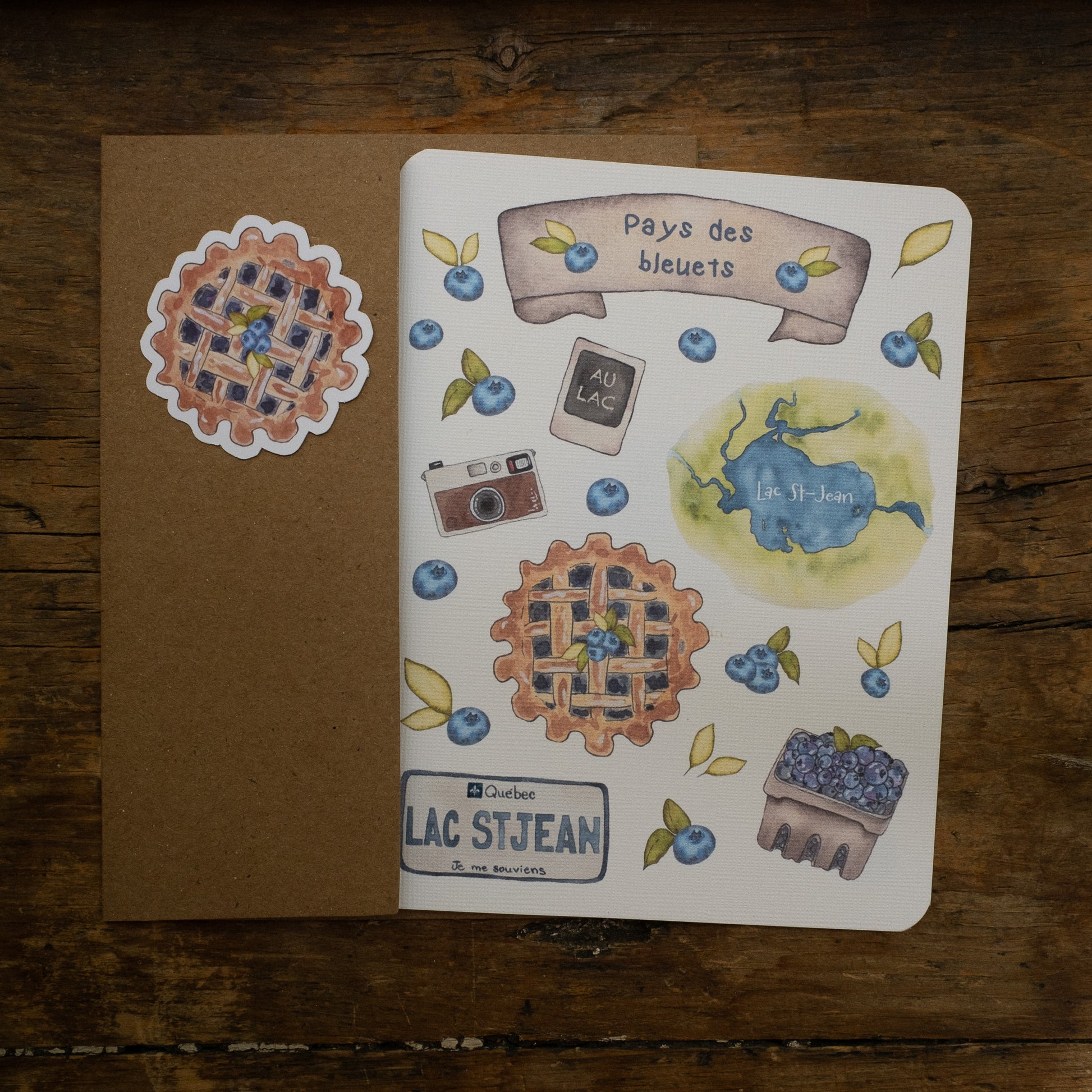 Matériaux utilisés : papier cartonné texturé style lin, haut de gamme, impression numérique, aquarelle, enveloppe Kraft, autocollant vinyle mat.