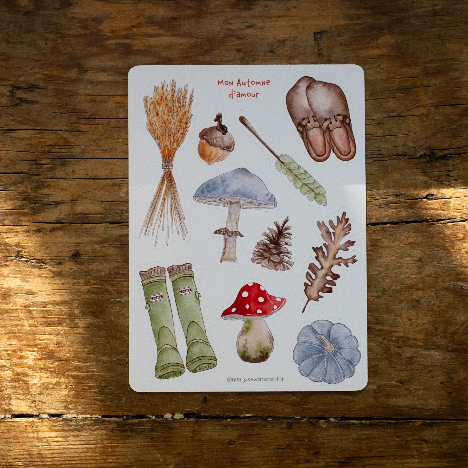 Feuille de 11 autocollants aux allures d'automne, comme on l'aime ! Imprimée sur un papier autocollant en vinyle mat.